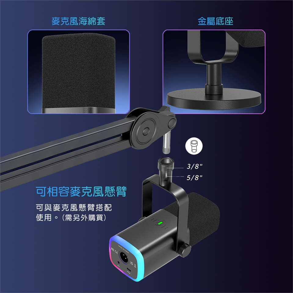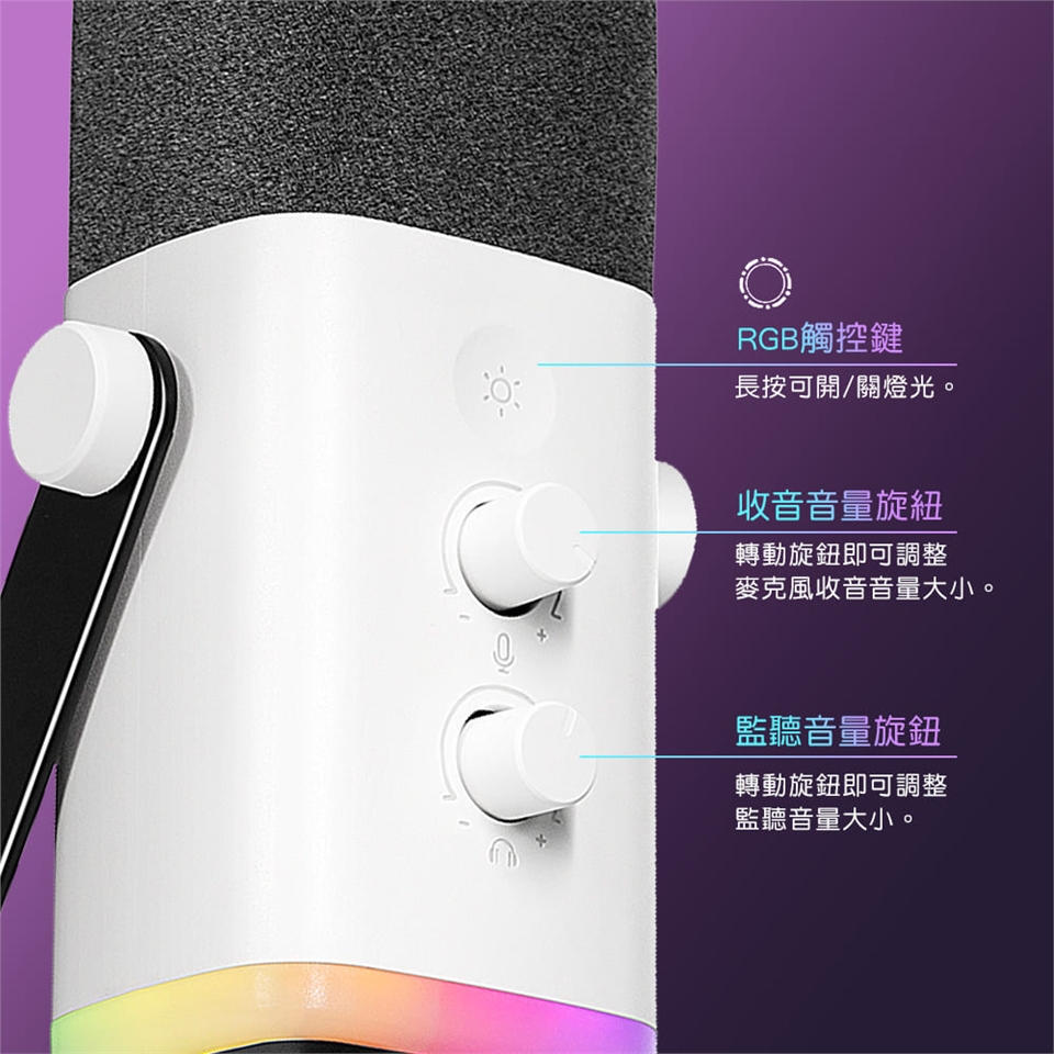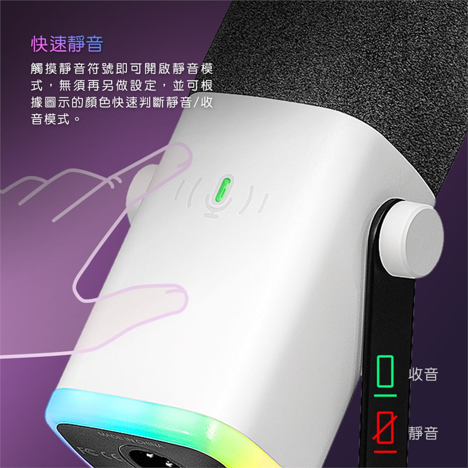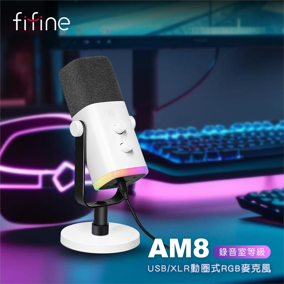 【FIFINE AM8 錄音室等級USB/XLR動圈式RGB麥克風-白色款】