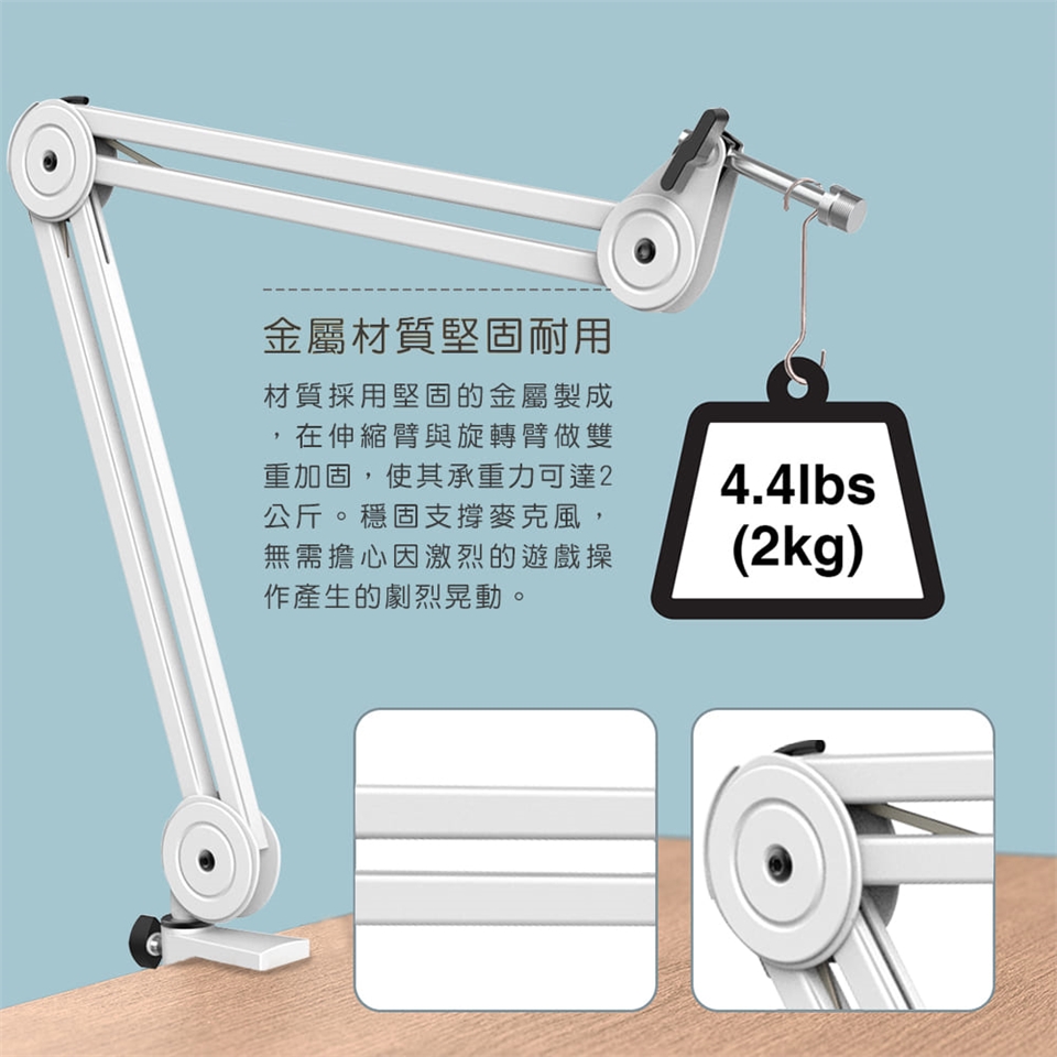 穩固支撐麥克風,無需擔心因激烈的遊戲操作產生的劇烈晃動。