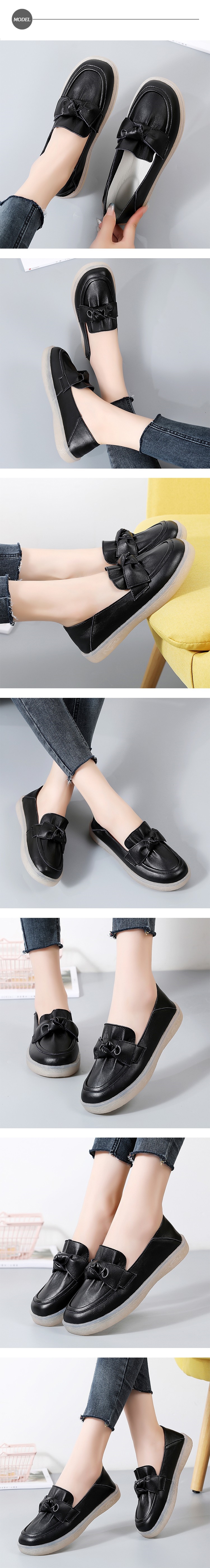 【MOM】樂福鞋 休閒樂福鞋/真皮甜美蝴蝶結造型小圓頭休閒樂福鞋 黑
