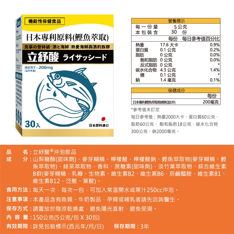 本產品含有魚類、牛奶製品,孕婦或哺乳者請先洽詢醫生。