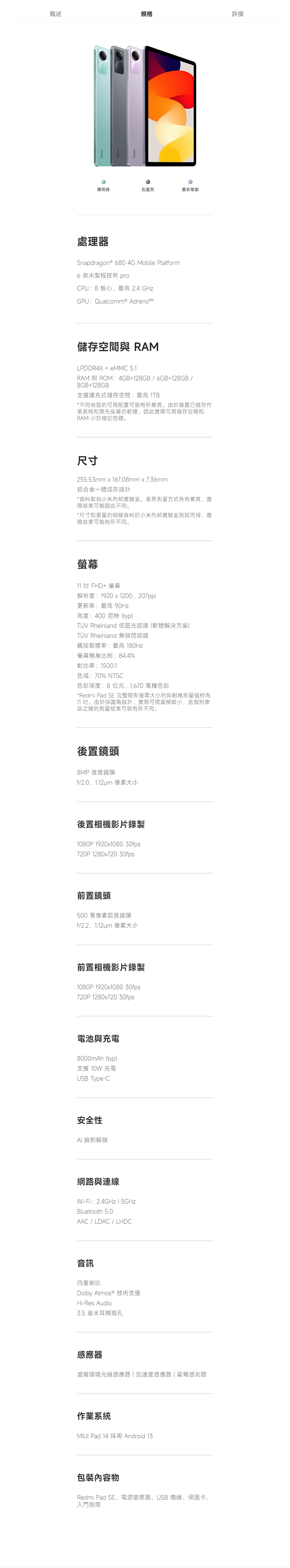 以上規格若有任何錯誤,請以原廠所公布資料為主。