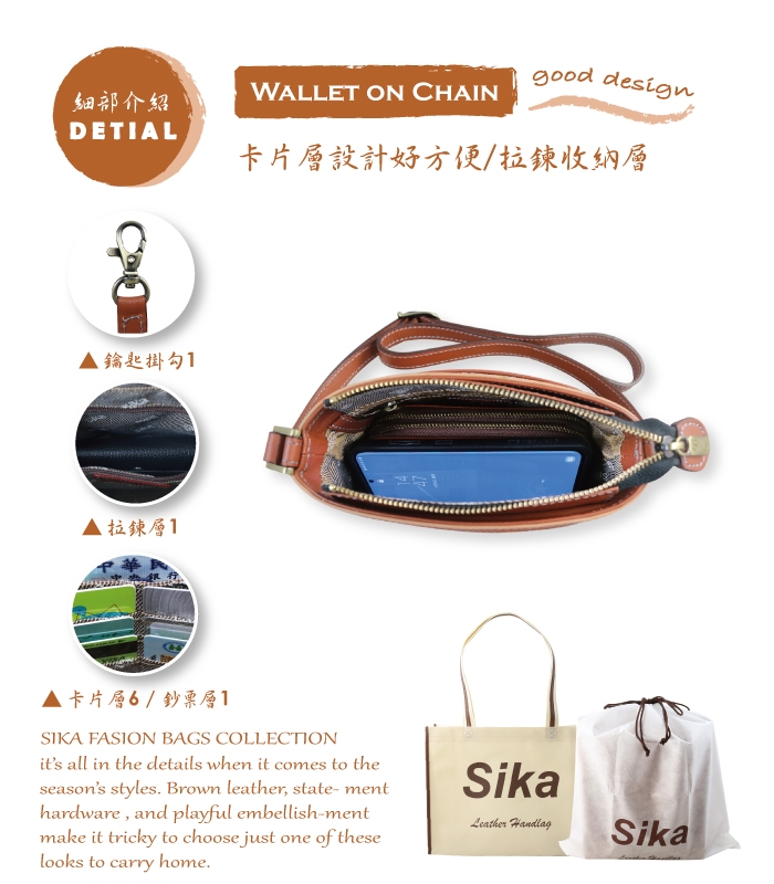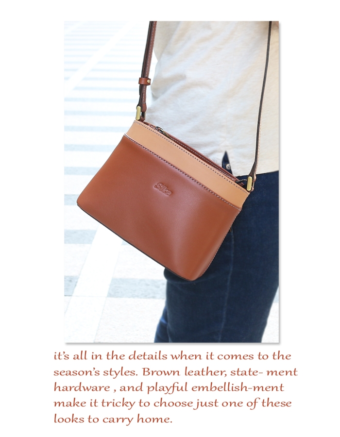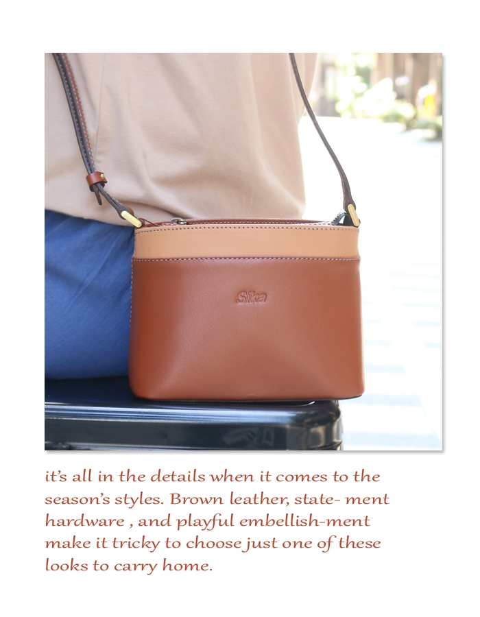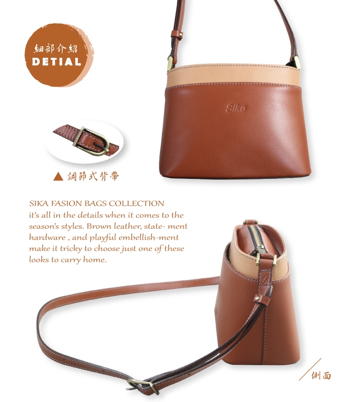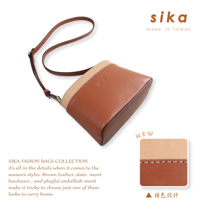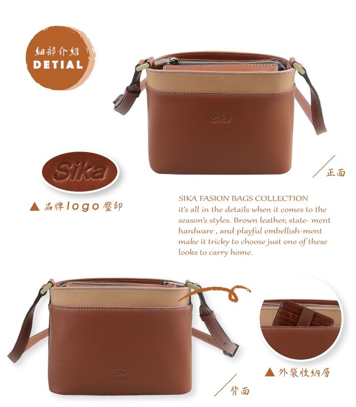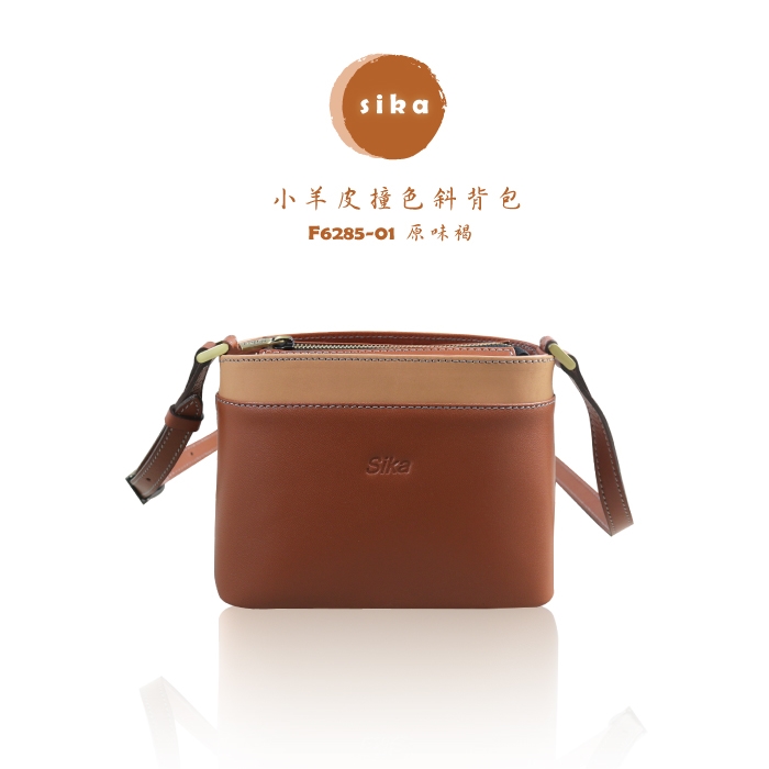 Sika小羊皮撞色斜背包F6285-01原味褐