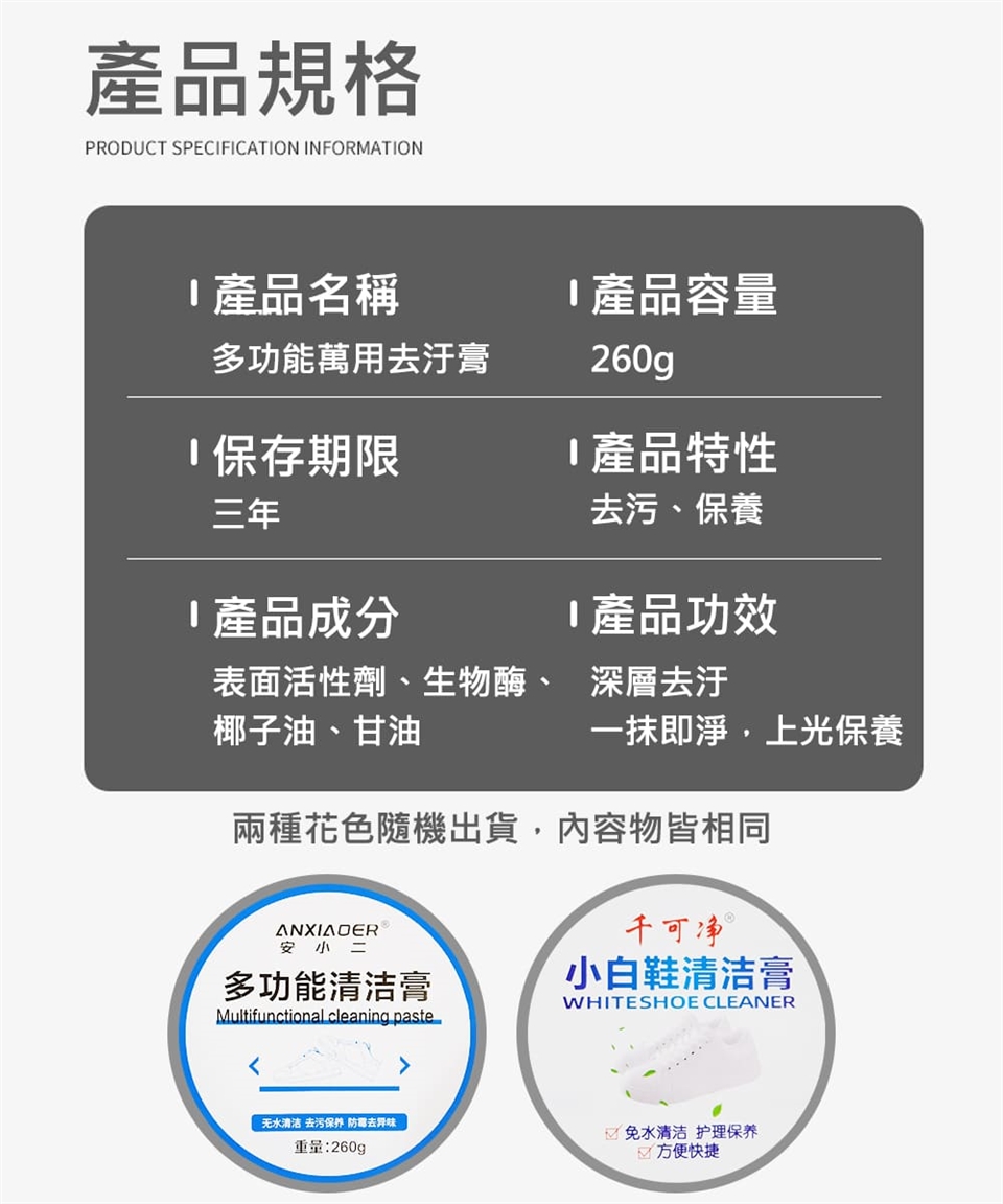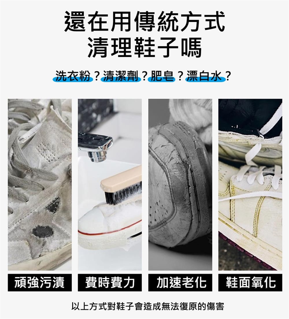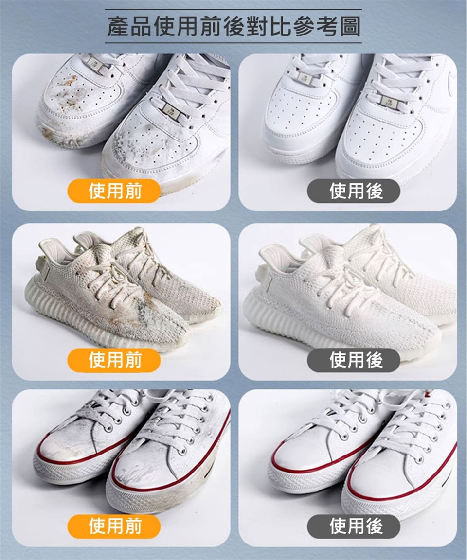 ◎溫和配方不傷手也不傷鞋,採用表面活性劑,有效去除污垢