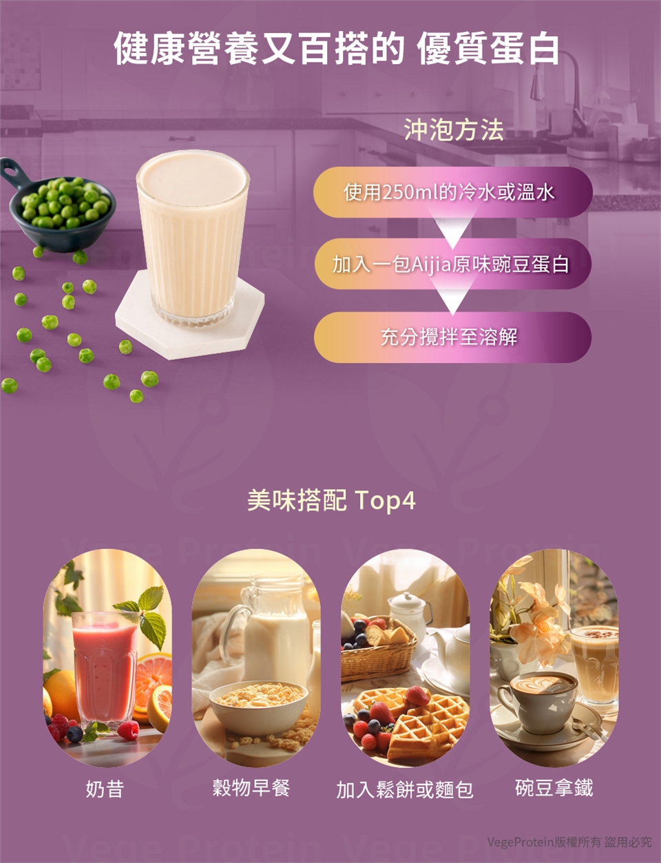 - 蛋白質每份含量80%以上,每日蛋白質攝取輕鬆達標