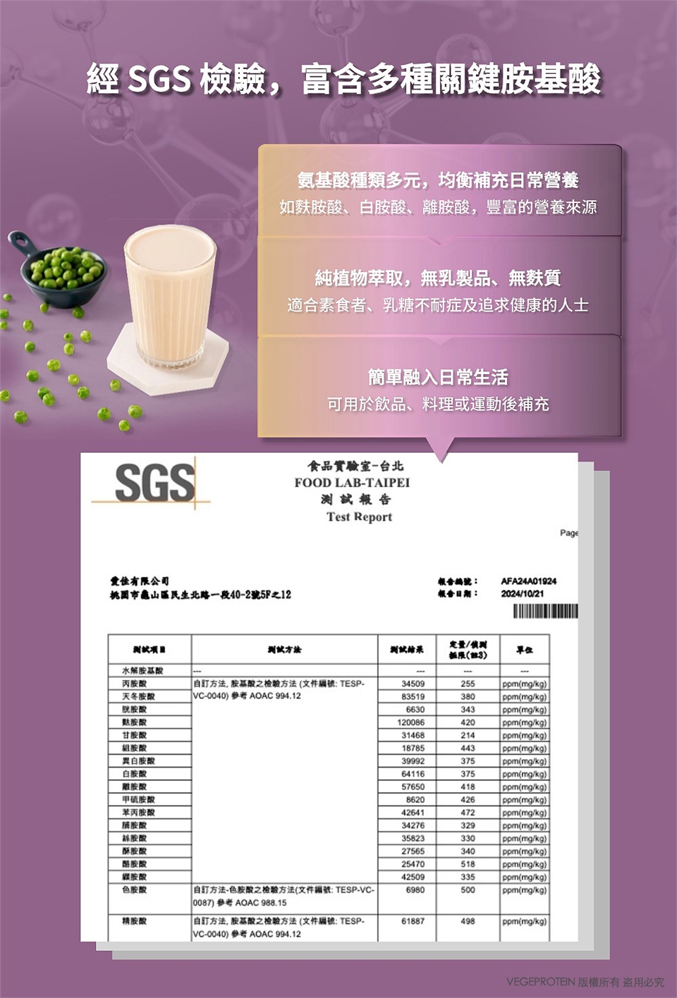 - 主要原料:豌豆分離蛋白,羅漢果萃取物