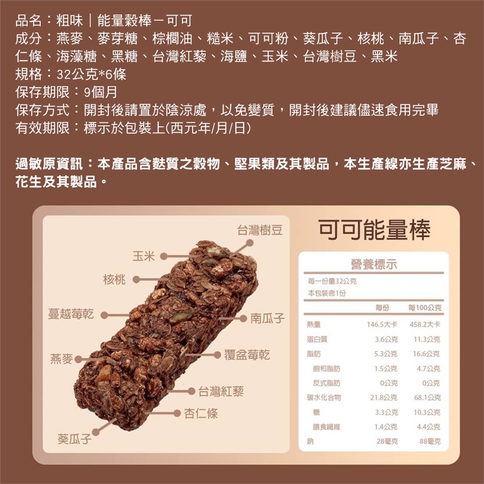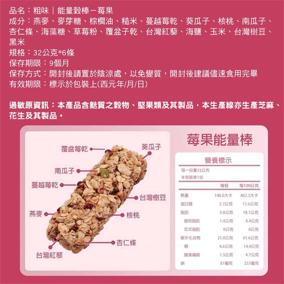 本產品含麩質之穀物、堅果類及其製品,本生產線亦生產芝麻、花生及其製品。