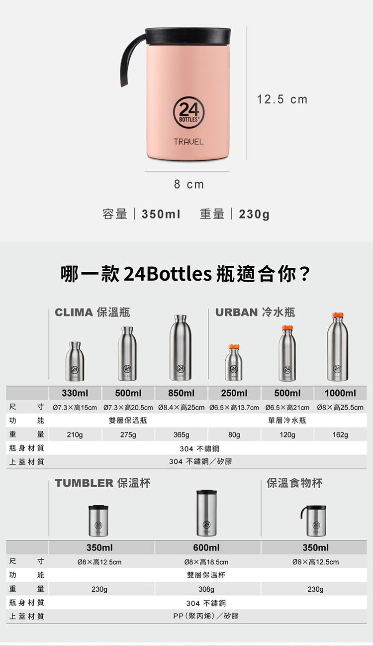 材質:隨行杯-304不鏽鋼(18/8 Stainless Steel)