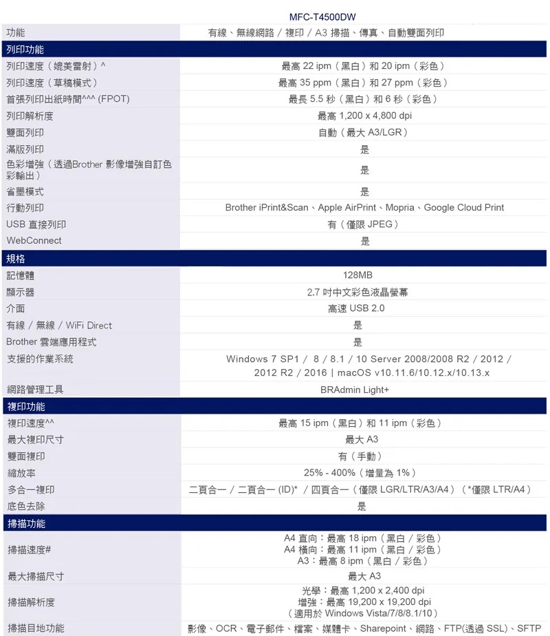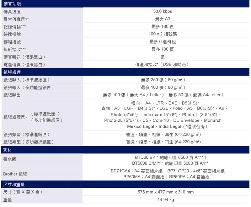 產品規格依Brother台灣官方網站公佈為主,若有更改恕不另行通知。