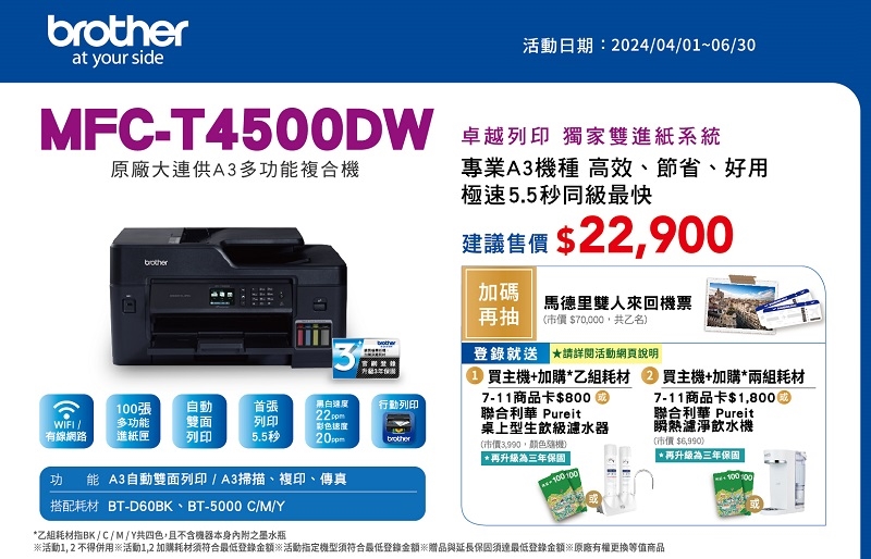 ★請注意:印表機購買金額若低於贈品最低登錄金額(詳見官網),恕不再適用原廠上網登錄送活動。