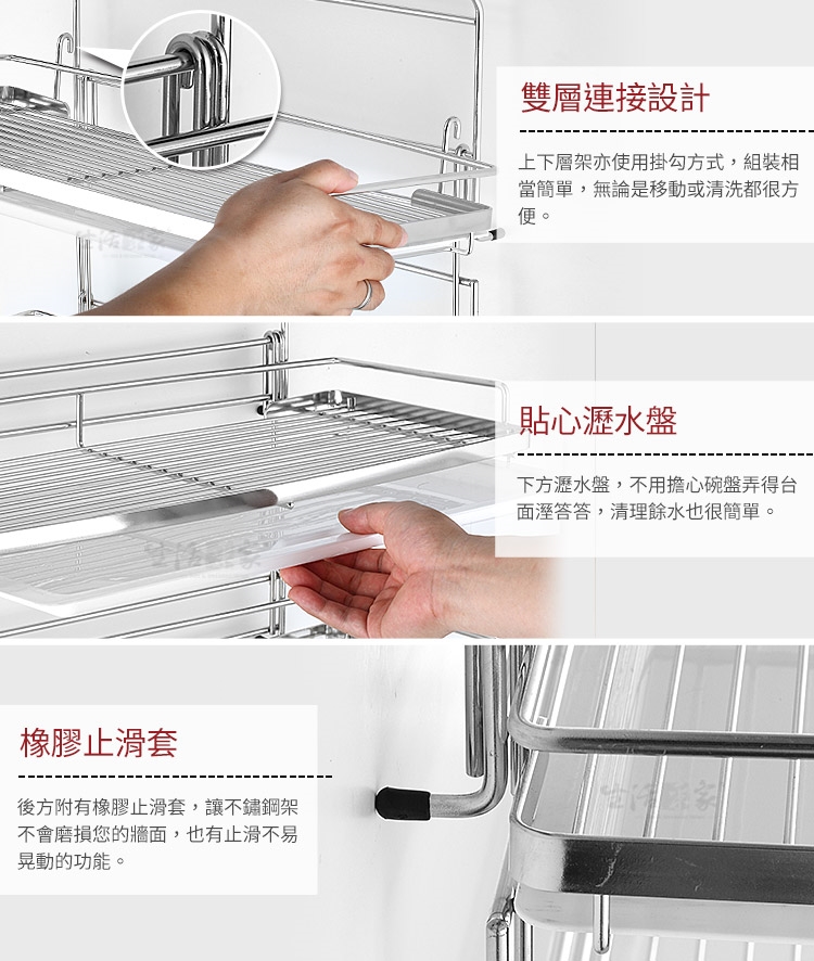 5.商品:掛架*1、瀝水層架*2、盤架*1、瀝水盤*1、說明書*1