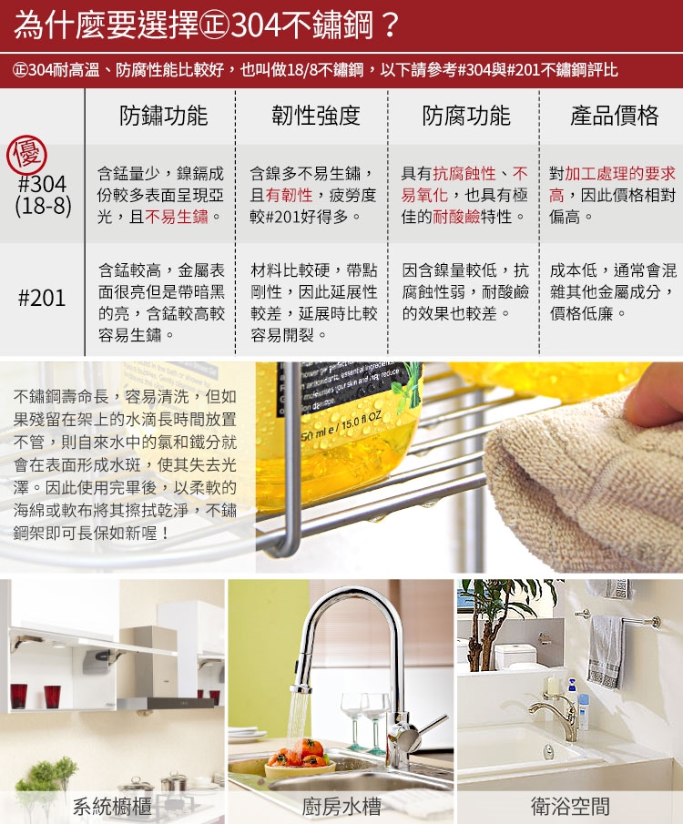 擁有二十幾年外銷經驗,商品深受歐美日等地區肯定,堅持不用次級材料,只選用正統高級㊣304(18-8)不鏽鋼,品質好不會生鏽,絕對是您的不二選擇!!