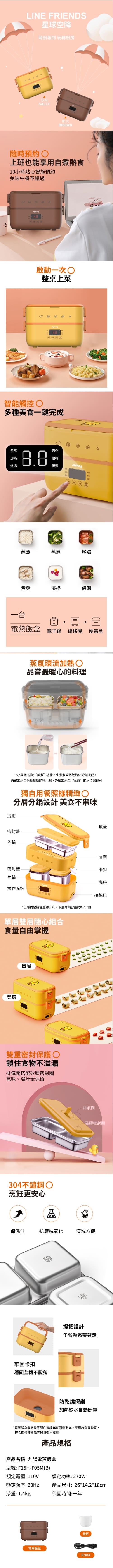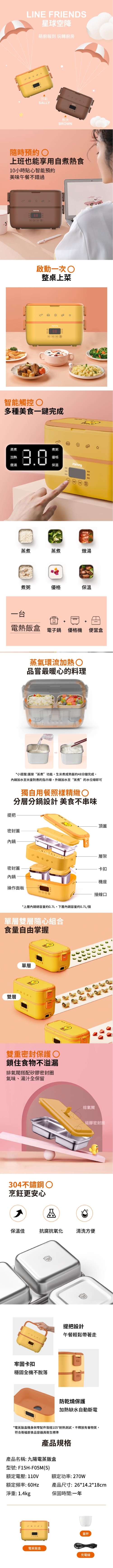 九陽電蒸飯盒 熊大F15H-F05M(B)*1 (不可體驗)