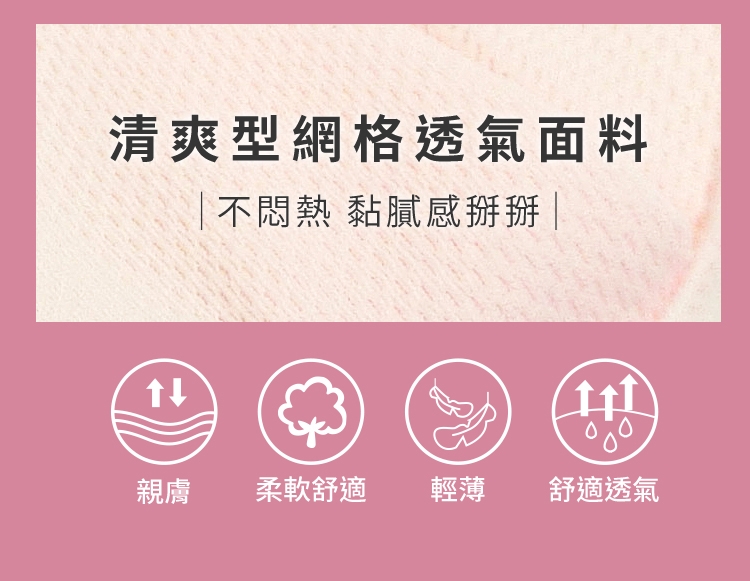 清爽型網格透氣面料,不悶熱,黏膩感掰掰