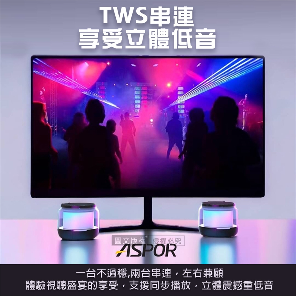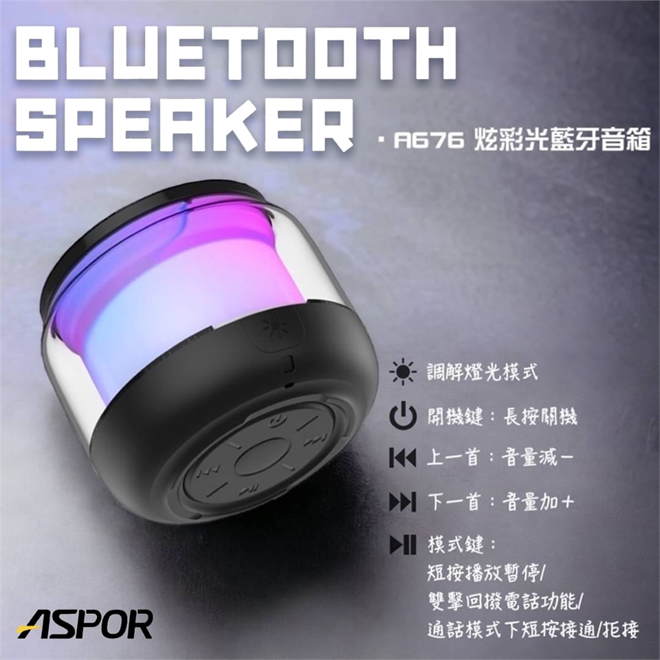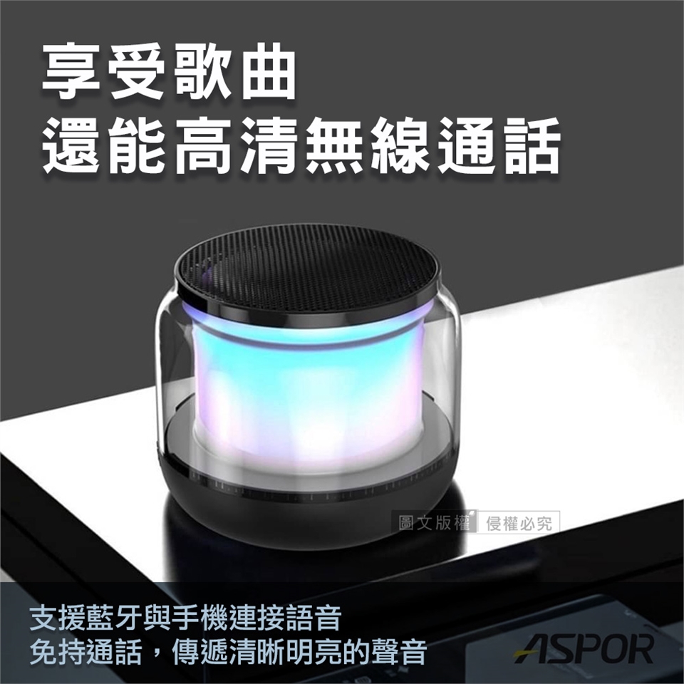 ASPOR 360度環繞立體聲 七彩光無線藍牙喇叭 炫彩可插卡藍牙音箱