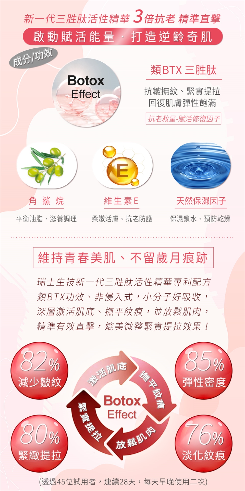 瑞士先進生技 ~ 三胜肽活性精華專利配方,類BTX功效、非侵入式,小分子好吸收,