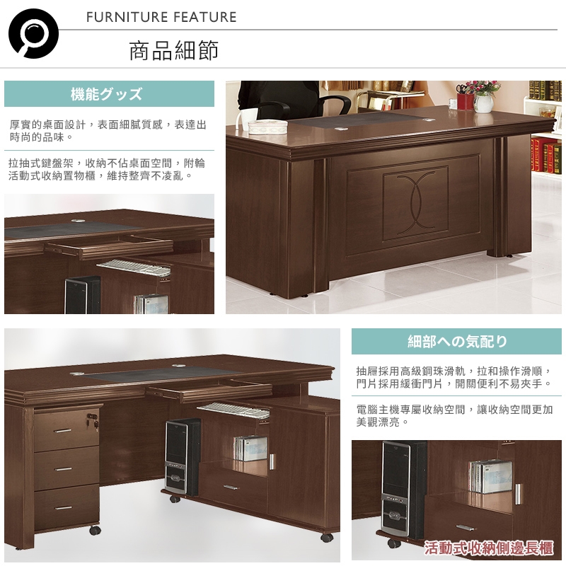 氣派線條細膩刻紋設計,搭配厚實桌面,增添辦公室的時尚氛圍!