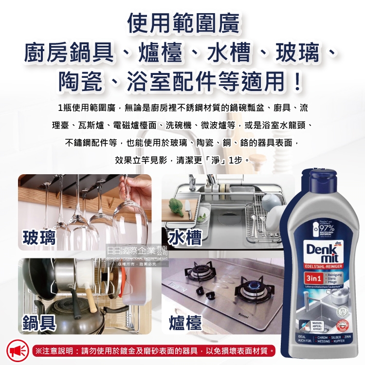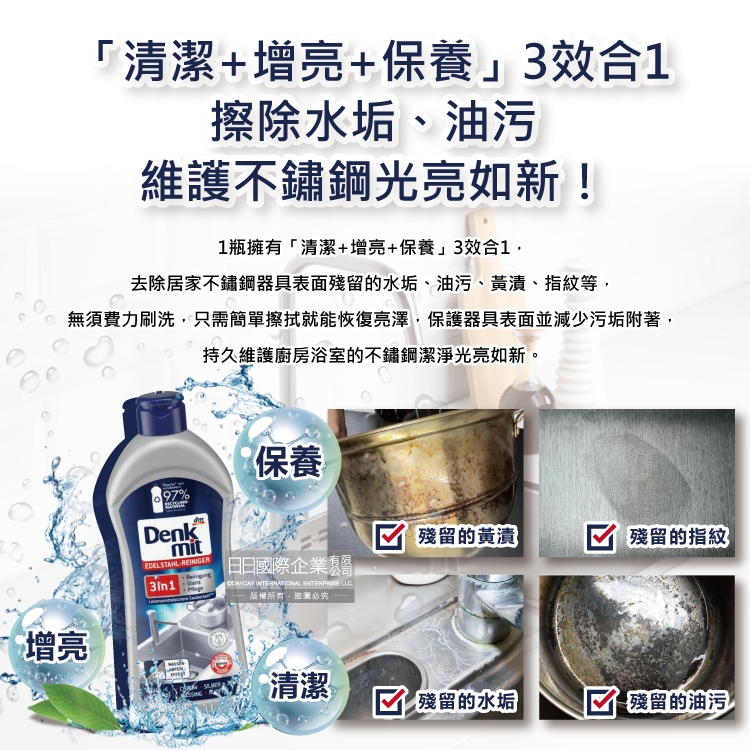 ●品名:3合1廚房浴室除垢增亮撥水抗污耐髒不鏽鋼亮光清潔劑