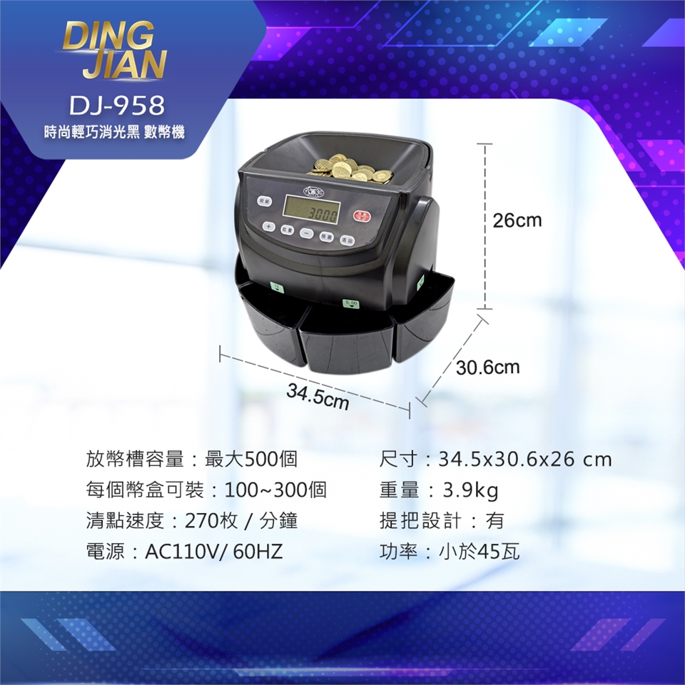 DT-958 時尚輕巧消光黑數幣機【超商宅配免運】