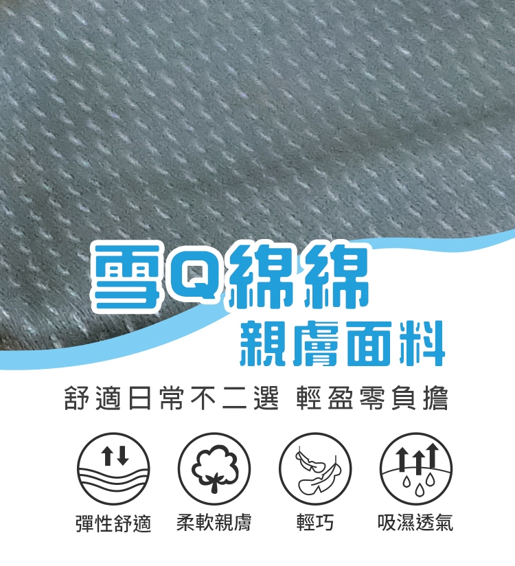 雪Q綿綿親膚面料,輕盈零負擔