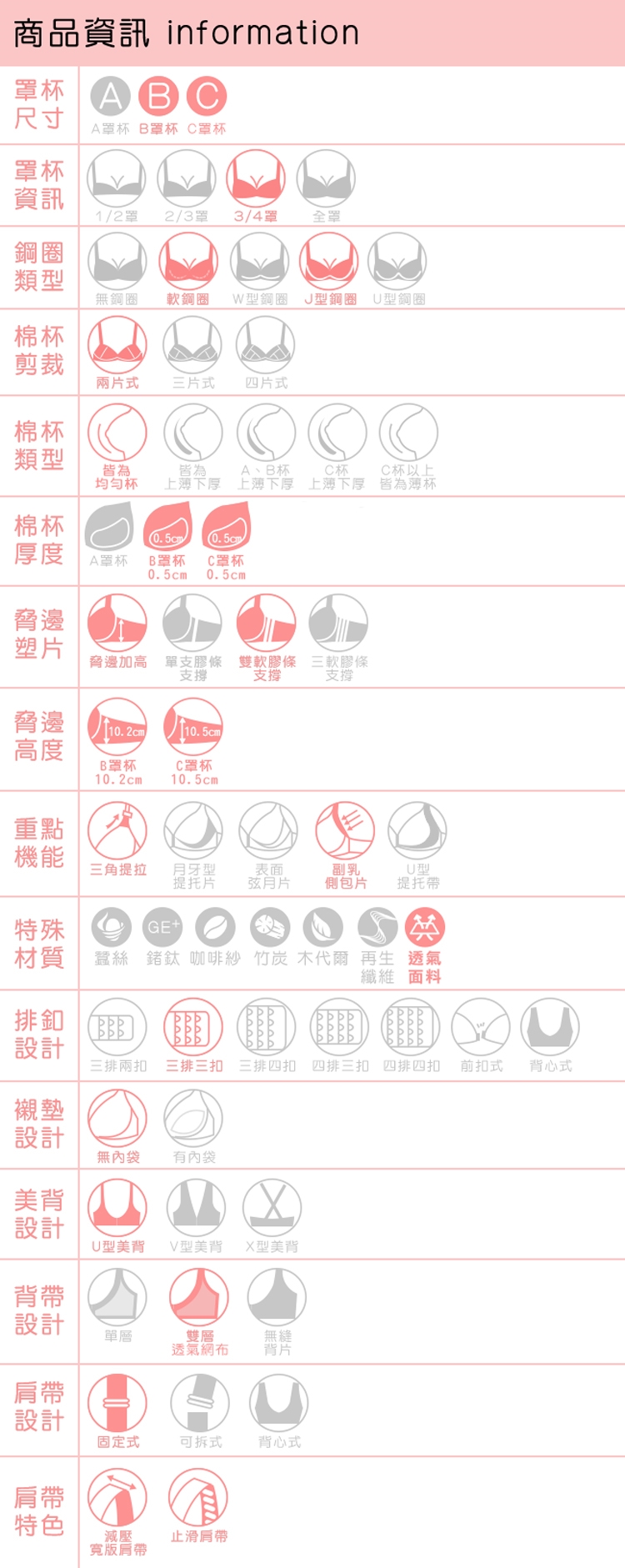 三排三勾設計,可自由調整最舒適下圍