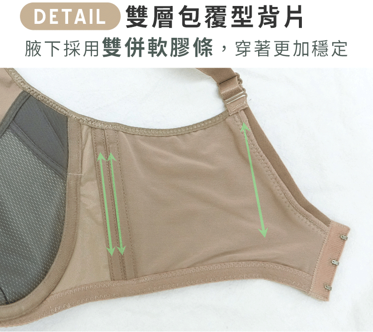 雙層包覆型背片,腋下採用雙併軟膠條