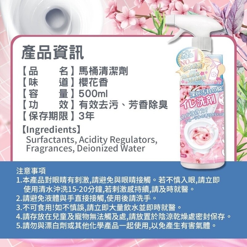🌸 溫和而不刺激,無損材質:我們深刻認識到家居材質的重要性,因此我們的清潔劑特別設計,即能強力去污,又能溫和呵護您的馬桶表面,並不會引起刺激或損害。