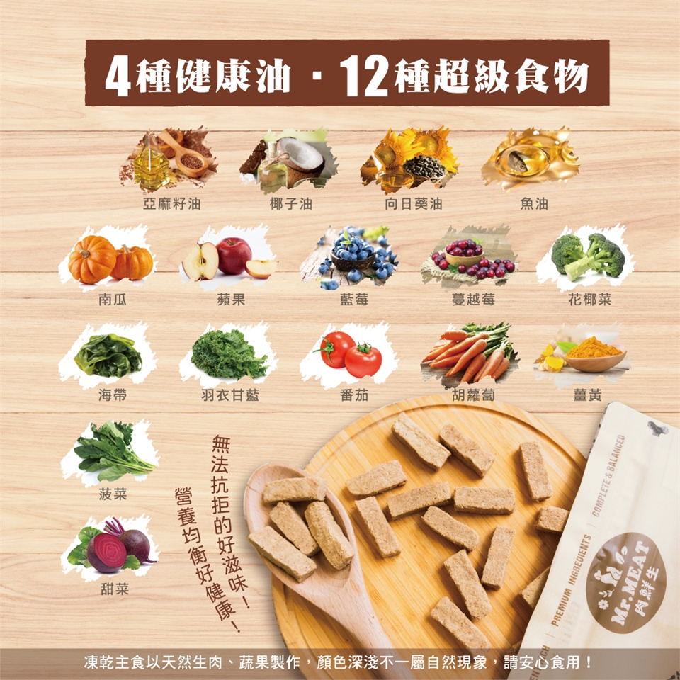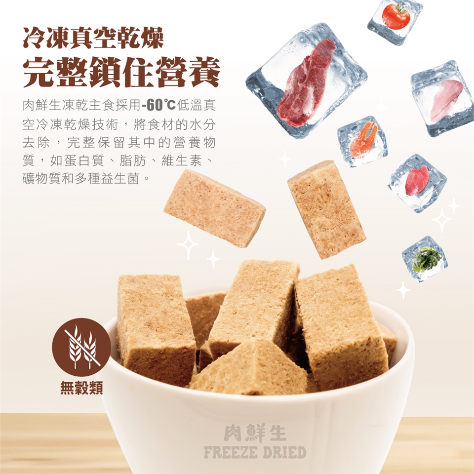 營養分析 : 蛋白質54.03%以上、脂肪14.57%以上、碳水化合物1.78%以下、粗灰分6.0%以下、粗纖維2.5%以下、水分5.0%以下、鈣1.25%、磷1.07%、鈣磷比12:1