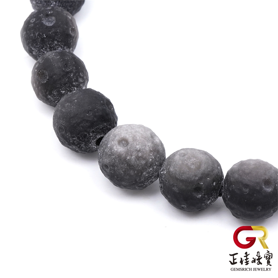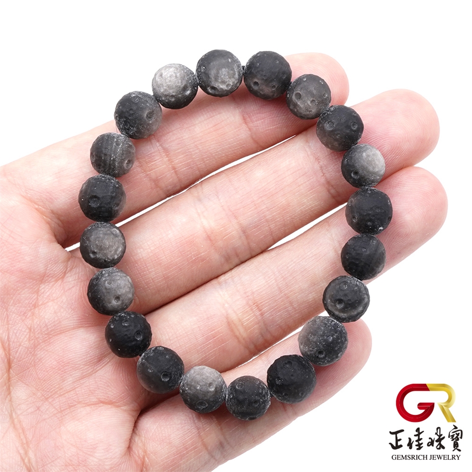 銀曜石 極地星球 8-9mm 月球雕刻珠 銀曜石手珠|日本彈力繩