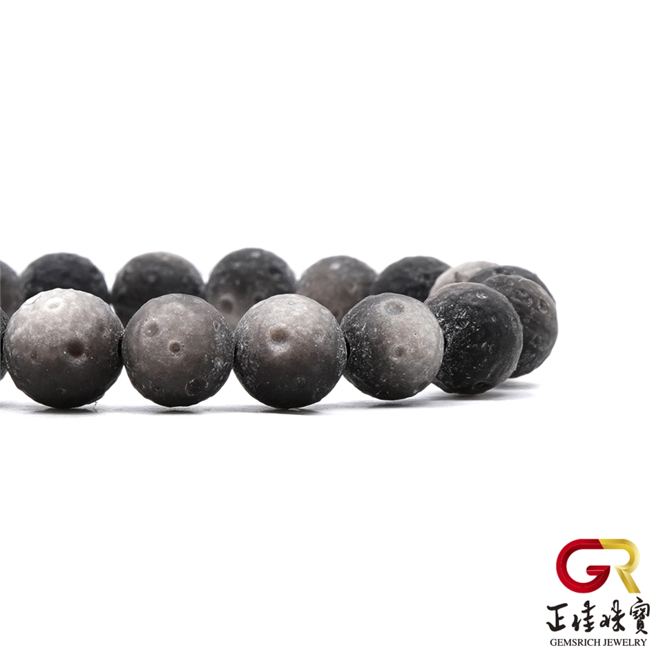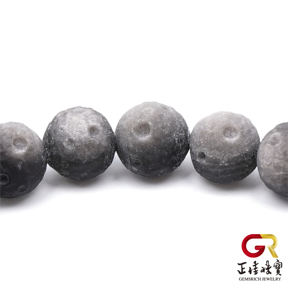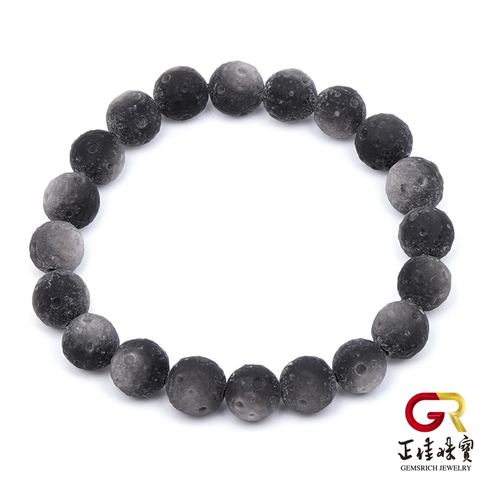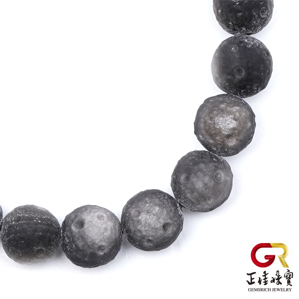 主角:銀曜石 極地星球 8-9mm 月球雕刻珠 銀曜石手珠|日本彈力繩