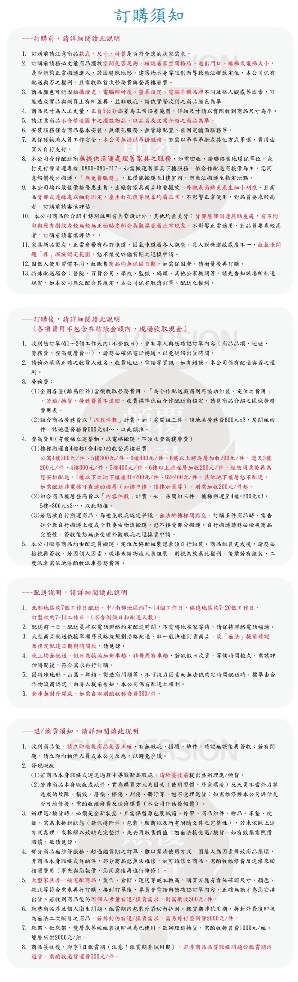 1. 全木心板製、木心板採用符合標準低甲醛,耐磨、耐水處理