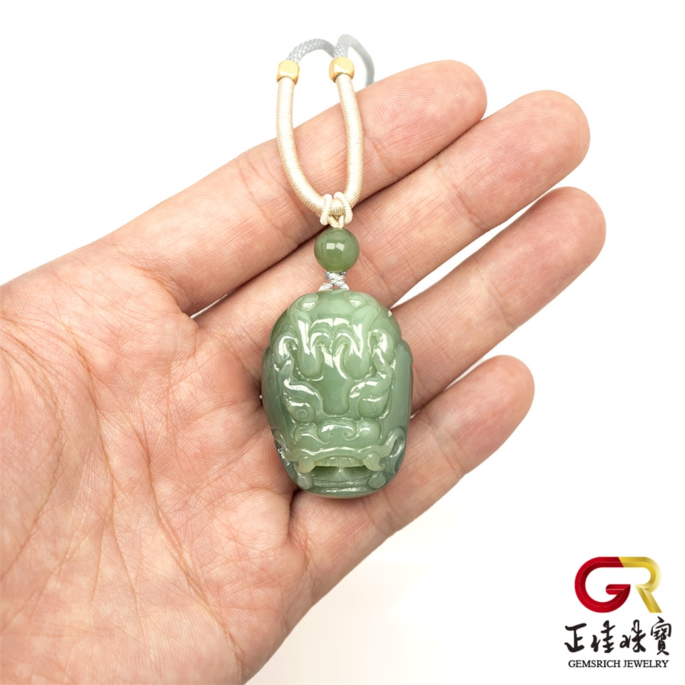 和田碧玉 頂級老礦 33.7g 玉鬼頭吊墜|可調式棉繩