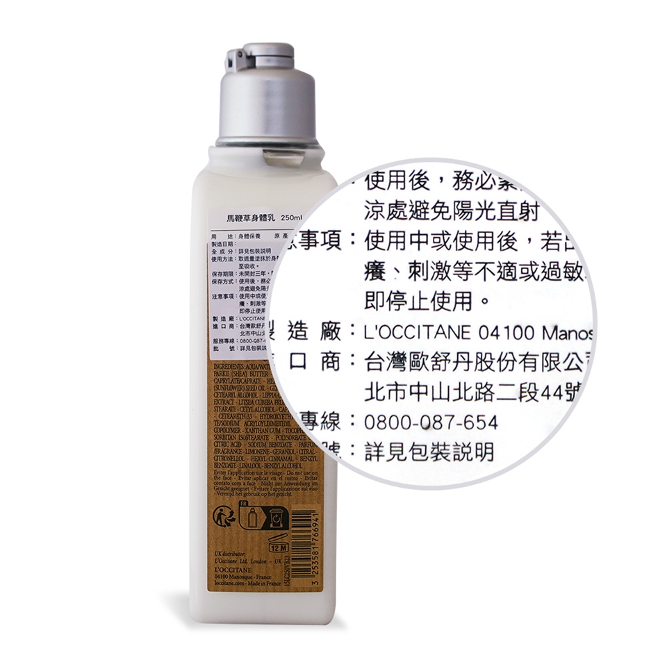 中文品名:L'OCCITANE 歐舒丹 馬鞭草身體乳(250ml)