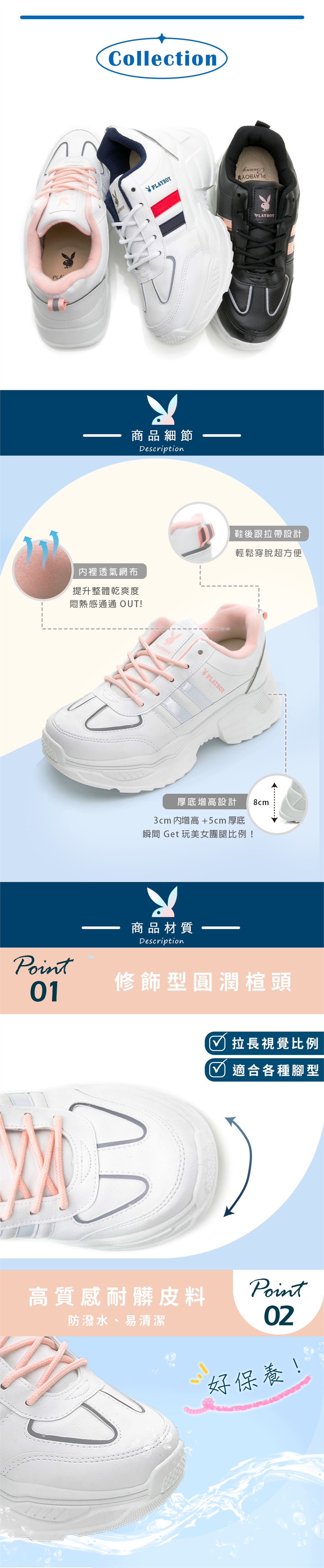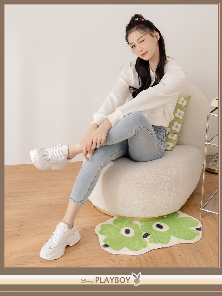 PLAYBOY 漫步雲朵 內增高厚底老爹鞋-白粉