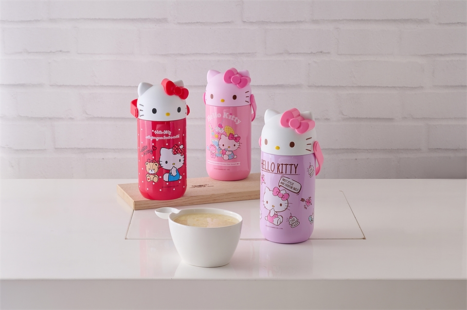 內容物: Hello Kitty 造型真空食物燜燒罐x1、不鏽鋼折疊湯匙x1