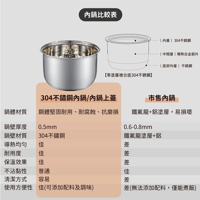 ◎304不鏽鋼內鍋&內鍋上蓋