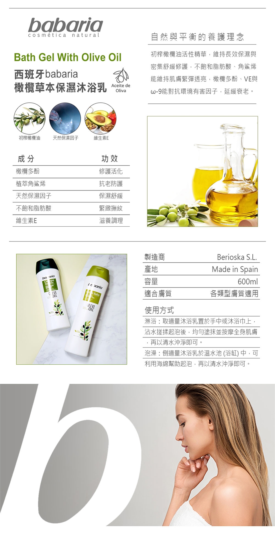 babaria橄欖保濕沐浴乳600ml