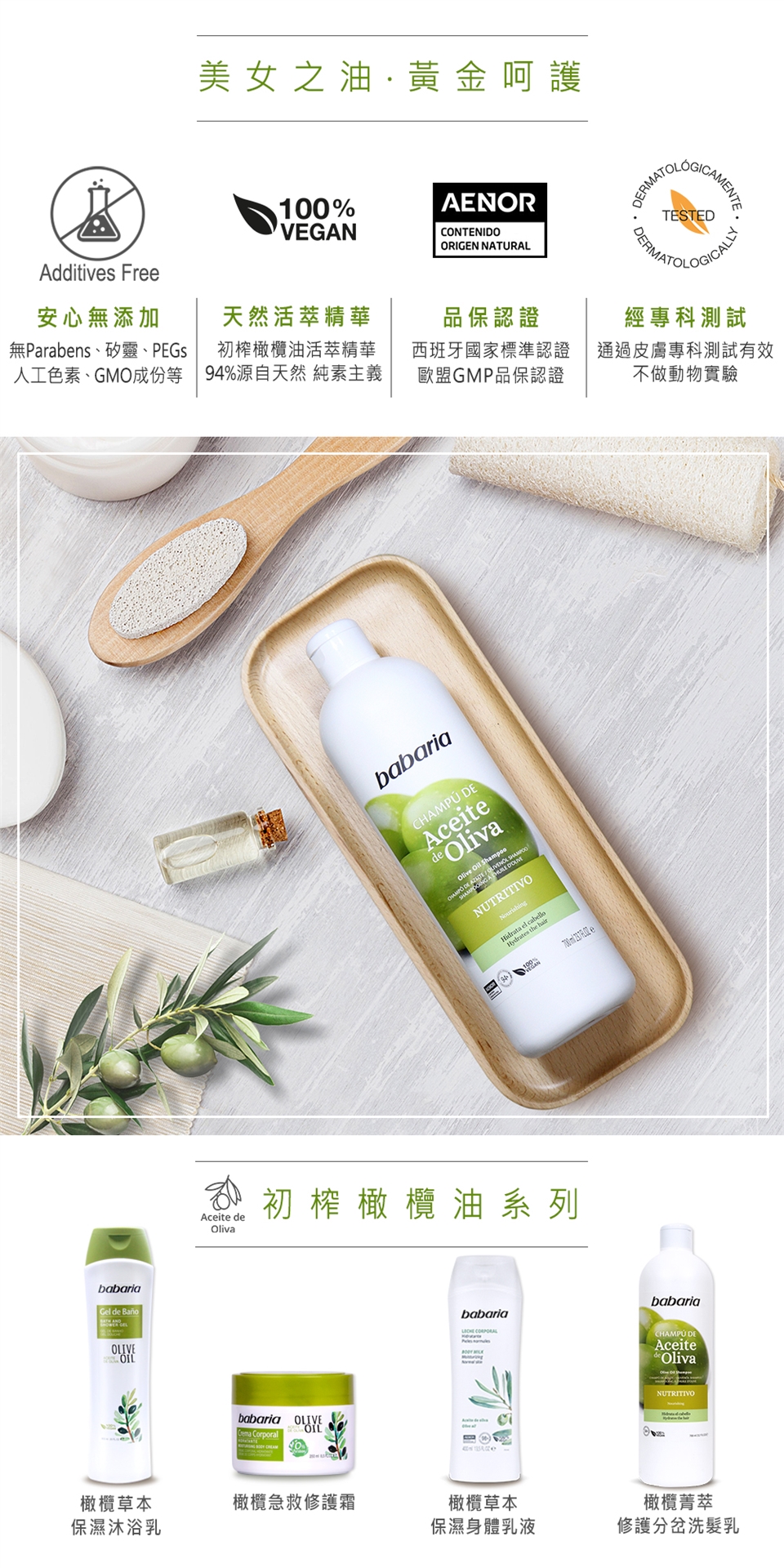 安心無添加:無Parabens、矽靈、礦物油 、PEGs、GMO基改與動物成份等