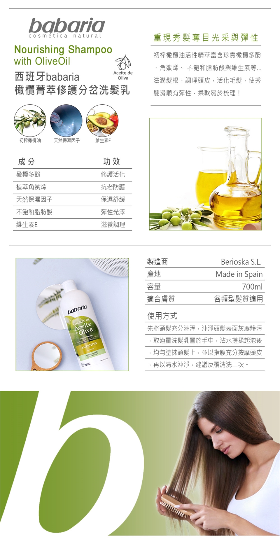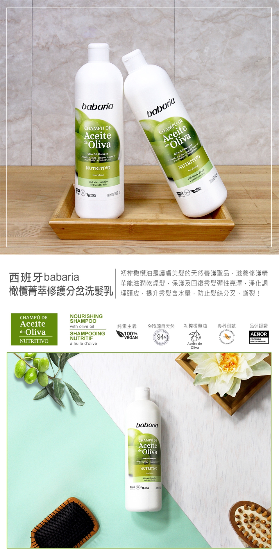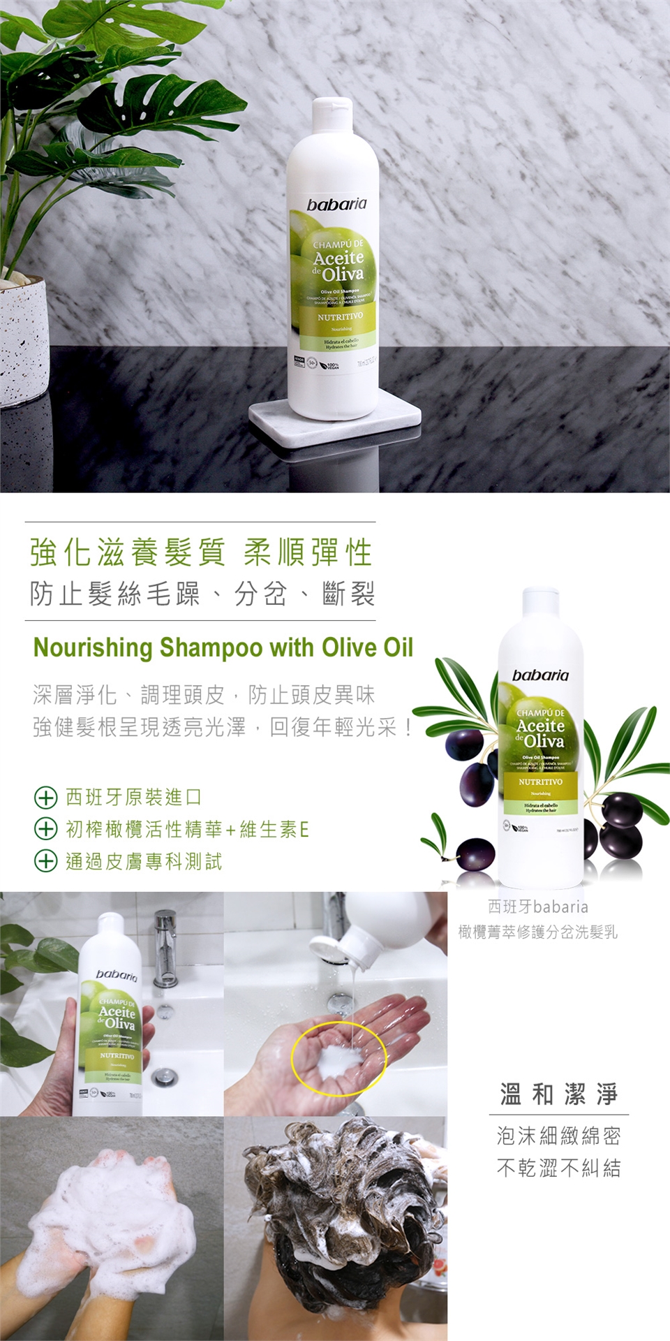 babaria橄欖菁萃修護分岔洗髮乳700ml(總代理公司貨)