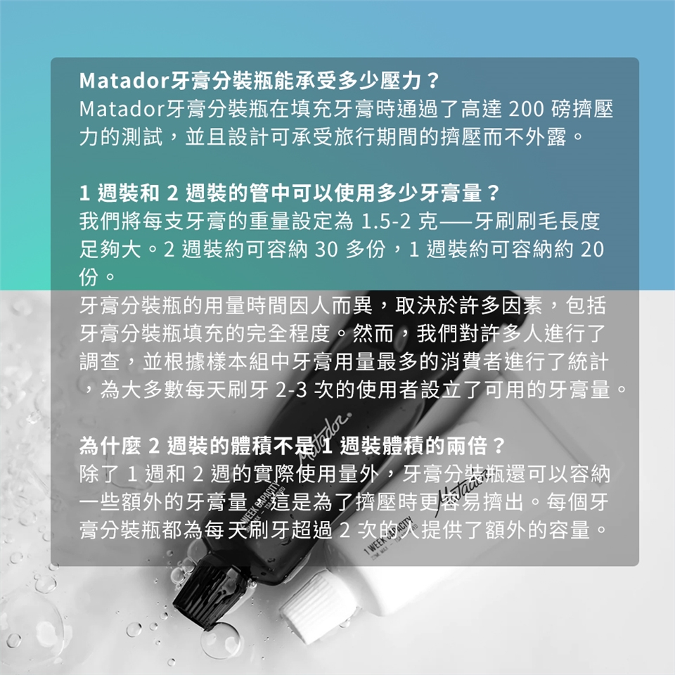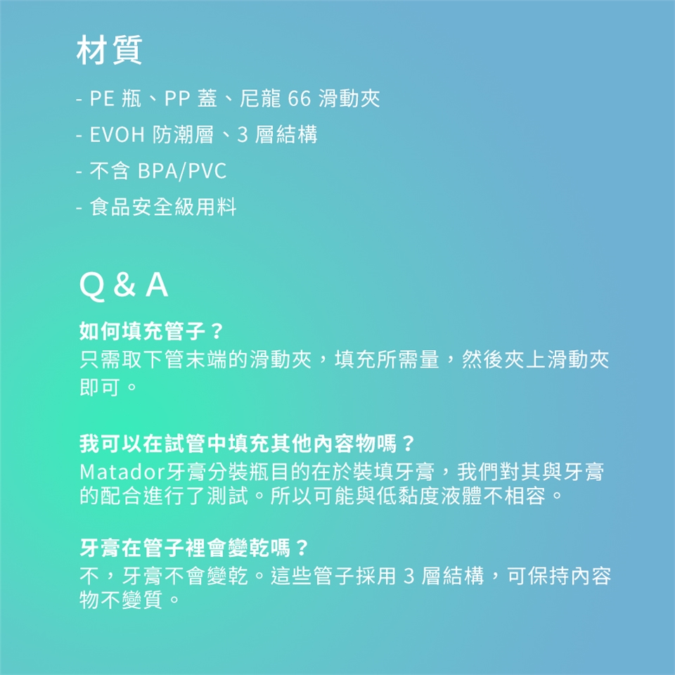 品名:Matador Refillable Toothpaste Tubes 牙膏分裝瓶