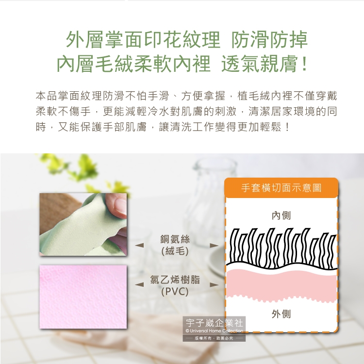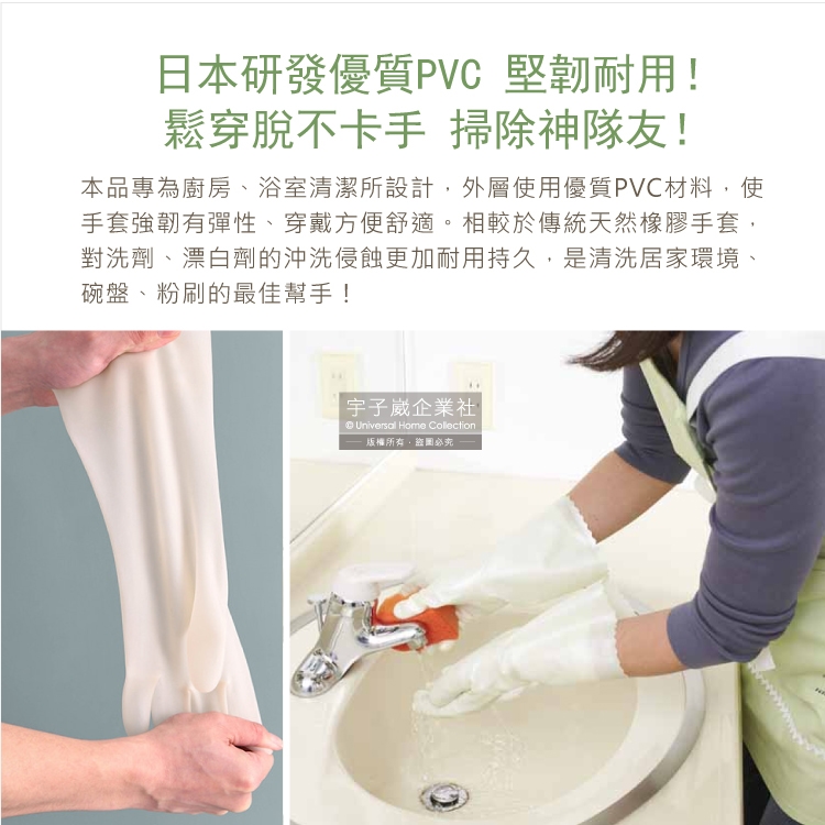 品名:廚房浴室加厚PVC強韌防滑珍珠光澤絨毛萬用清潔手套