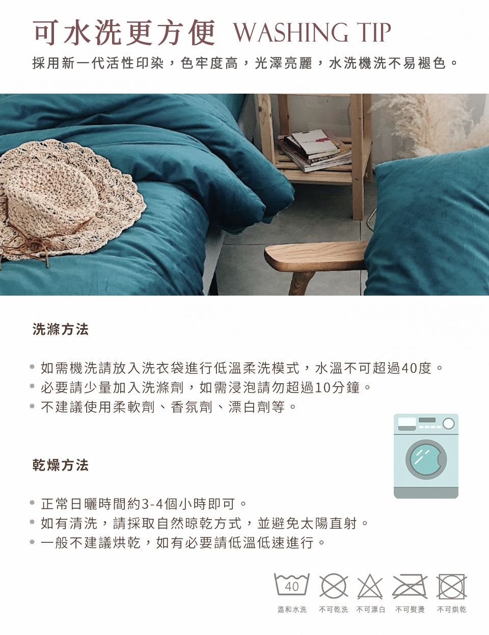 新一代活性印染,色牢度高不易褪色,可輕柔機洗,保養不費力!