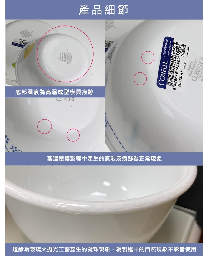 ※新的康寧餐具表面有一層透明的保護層,使用前請先清洗乾淨。
