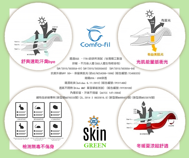 ◎我們使用獨家光能織物專利技術,高達99%的紫外線防護,讓你無後顧之憂享受戶外運動。