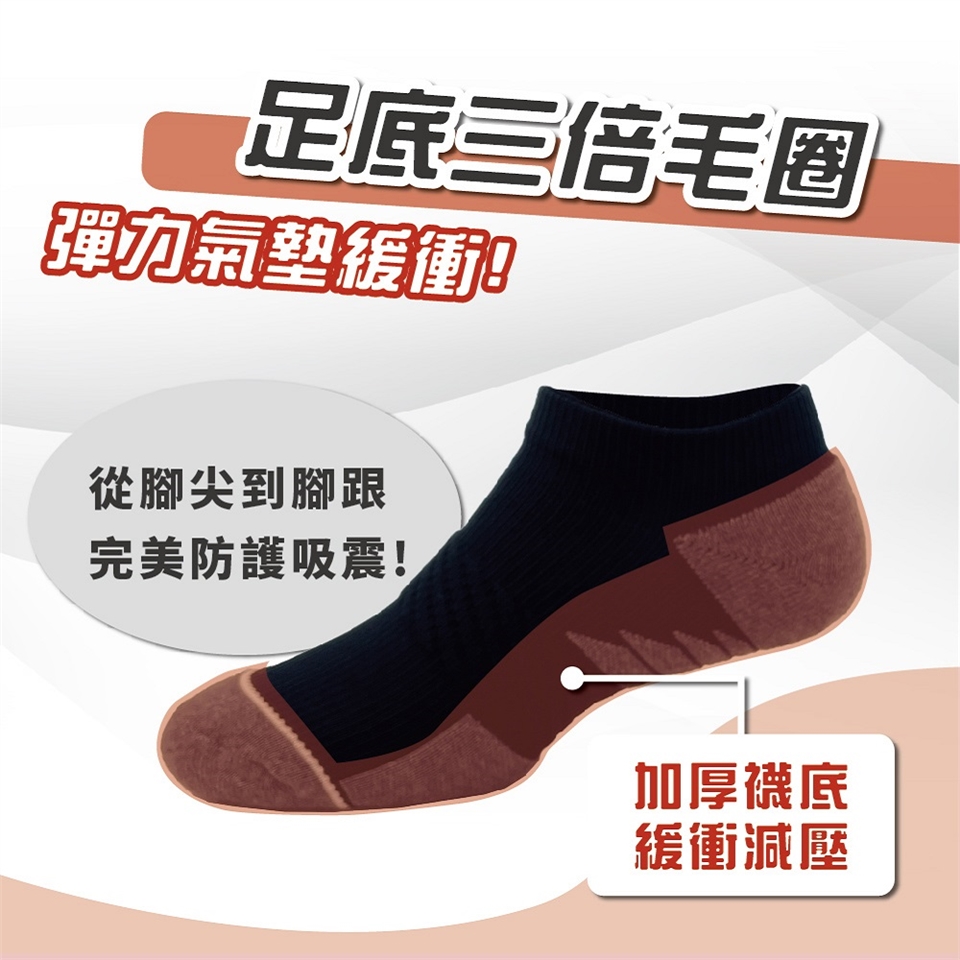 ☆腳底到腳跟整雙: 3倍毛圈加厚,運度時刻吸震緩衝