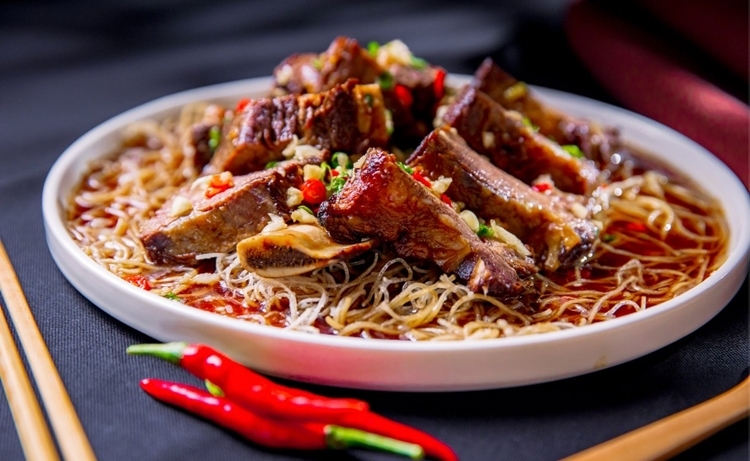 2. 水滾後熄火,將台塑牛小排浸泡在熱水中五分鐘後即可拆封盛盤