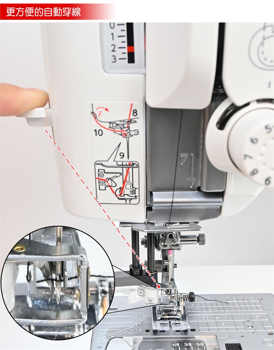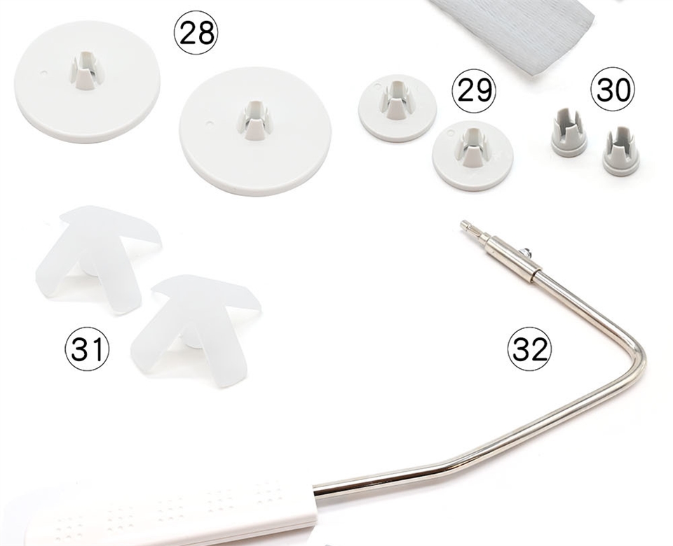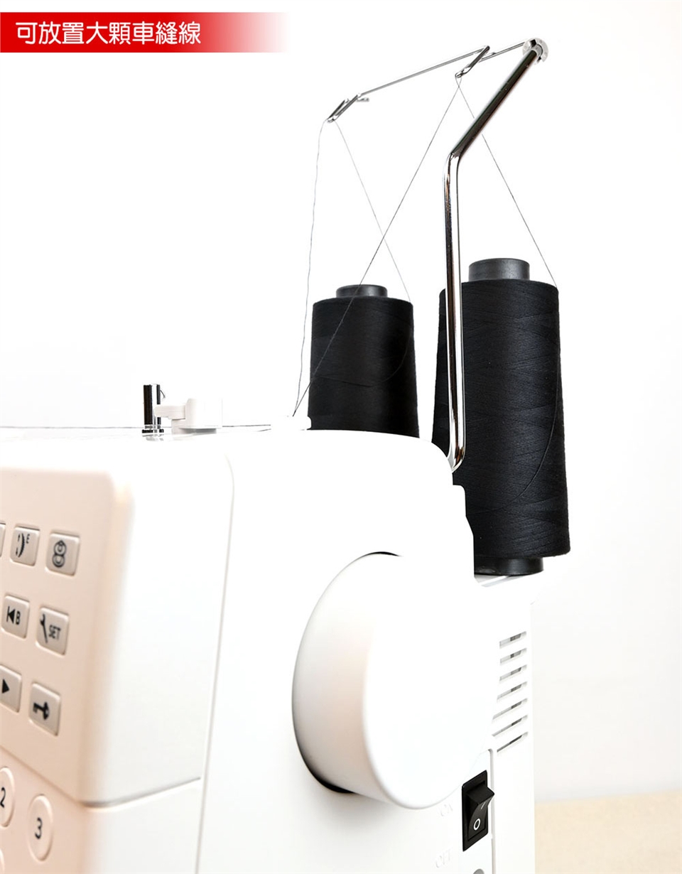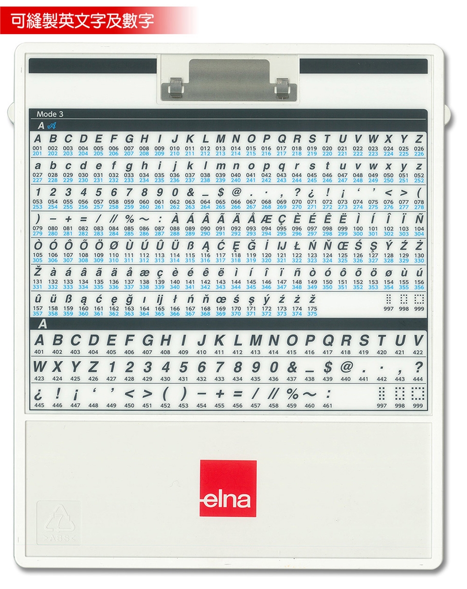 1、基本壓布腳A (已安裝在縫紉機上),2、布邊縫壓布腳M,3、密針縫壓布腳F,4、暗針縫壓布腳G,5、拉鍊壓布腳E,6、自動開釦眼壓布腳R,7、安定板,8、捲邊壓布腳D,9、前開式密針縫壓布腳F2,10、縫鈕釦壓布腳T,11、1/4"直線壓布腳O,12、專業級壓布腳HP,13、曲線壓布腳 PD-H,14、曲線壓布腳 QB-S,15、閉口型壓布腳,16、開口型壓布腳,17、透明圓盤壓布腳,18、上送料壓布腳脛,19、上送料壓布腳AD,20、鈕釦輔助板,21、梭子5個(1個安裝在縫紉機上),22、車針組,23、刷子,24、拆線刀,25、壓線導縫器,26、螺絲起子,27、線輪網2個,28、線輪蓋板(大)2個,29、線輪蓋板(小)2個,30、線輪蓋板(特殊)2個,31、線輪架2個,32、膝控抬桿,33、針板(已安裝在縫紉機上),34、直線針板,35、專業級針板