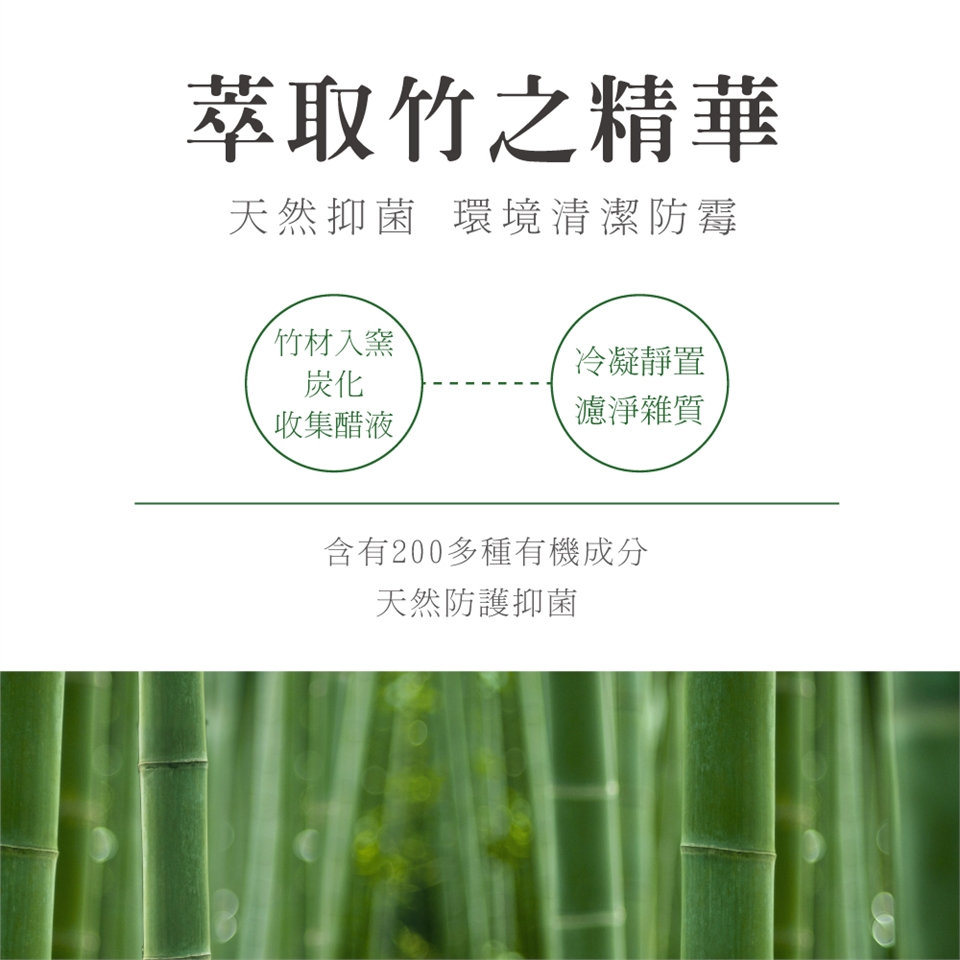 竹子天然醋酸氣味,可使蚊蟲忌避,噴灑於紗窗、門口,減少蚊蟲侵擾。