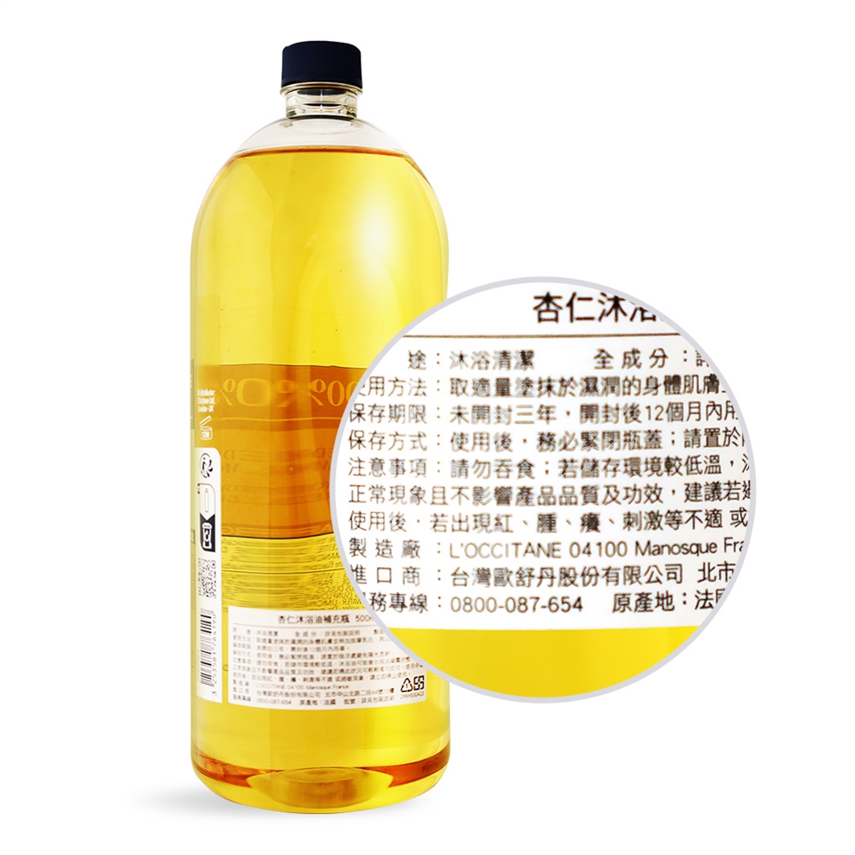 中文品名:L'OCCITANE 歐舒丹 杏仁沐浴油補充瓶(500ml)