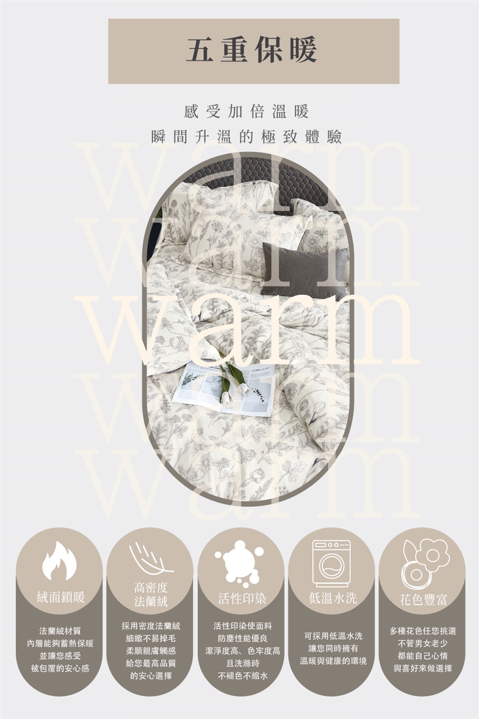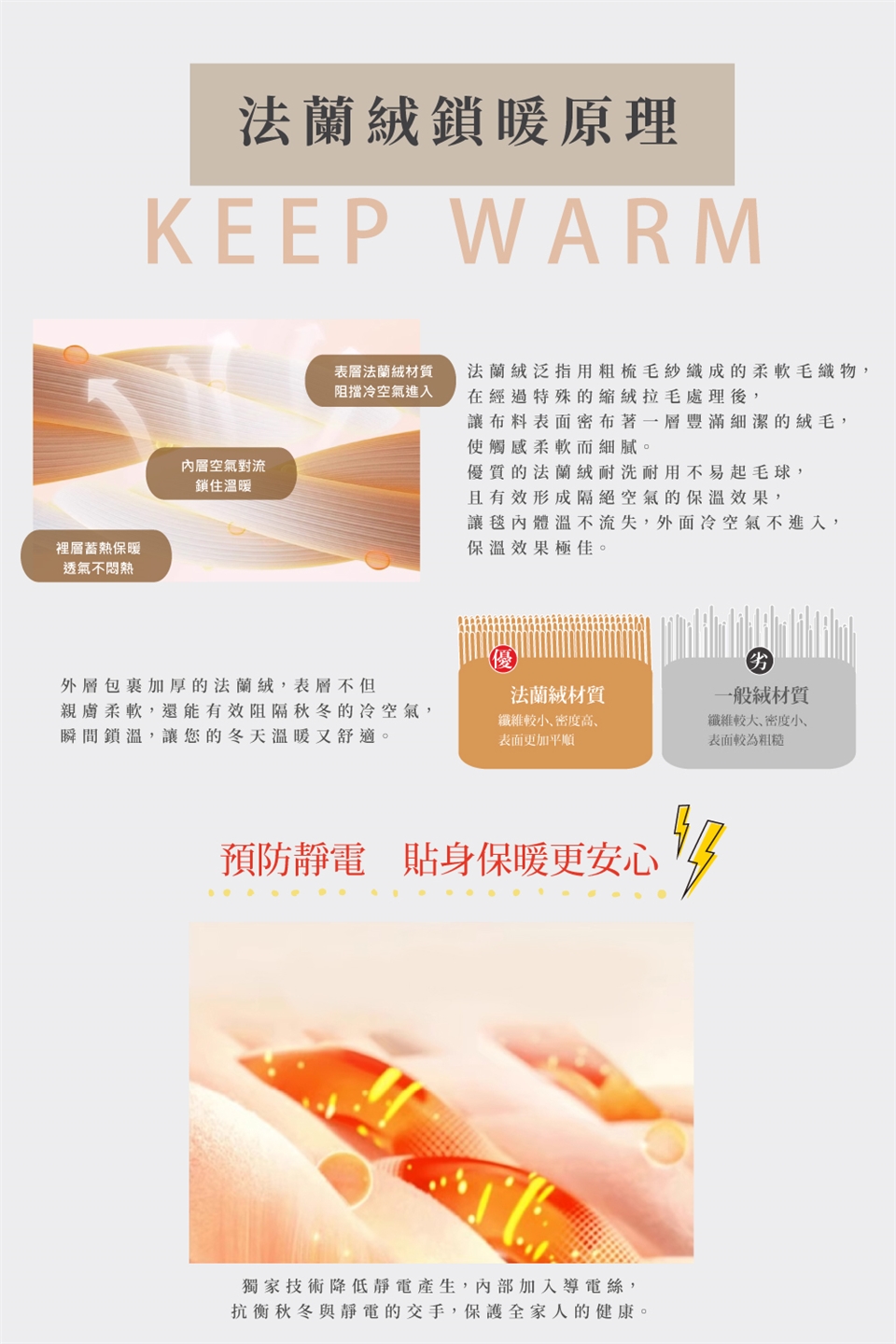 * 法蘭絨觸感細緻滑順,輕柔舒適好睡