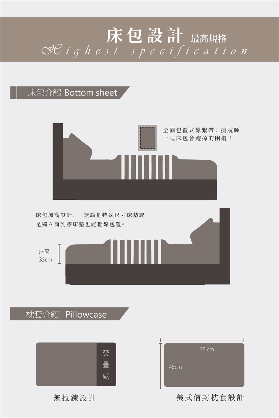 * 床包全圈式鬆緊帶設計,更緊密包住床鋪
